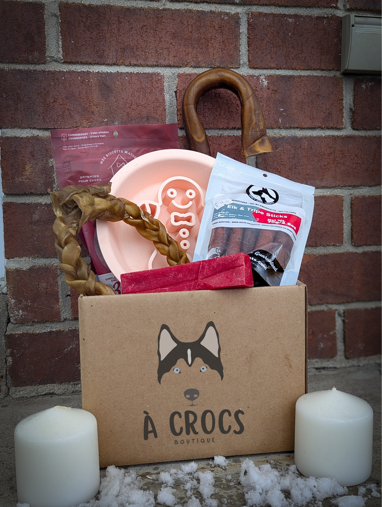La boîte contient 2 sacs de gâteries : canneberges et élan 🦌