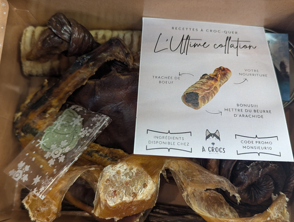 Notre boîte de dégustation de mastication est parfaite pour essayer plusieurs articles, saveurs, textures et protéines! Parfait à mettre sous le sapin déjà emballer dans sa boîte de Noël 🎄